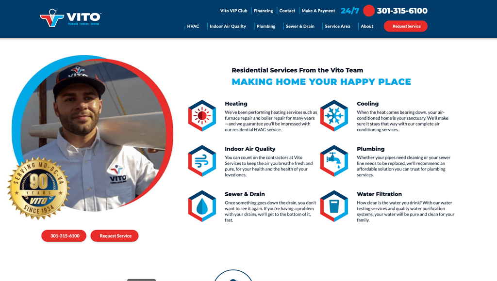 Ini adalah contoh laman web yang dioptimakan untuk Local SEO, dimana ia mengandungi laman khusus bagai setiap servis yang ditawarkan dan juga laman khusus bagi setiap lokasi perkhidmatan. Boleh lawati laman web mereka di vitoservices.com untuk mendapatkan inspirasi.