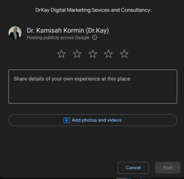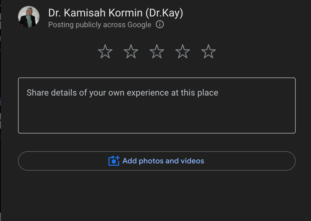 Anda boleh kongsikan link ke ruangan review di Google Business Profile kepada pelanggan-pelanggan anda. Minta mereka berikan ulasan beserta gambar/video sebagai bukti. Kemudian anda boleh juga kongsikan review pelanggan ini di media sosial dan laman web anda untuk meningkatkan keyakinan pelanggan baru.