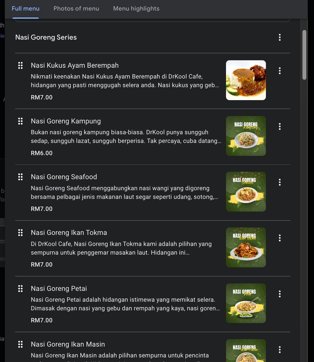 ✅ Menu terkini (supaya pelanggan tak kecewa kalau menu tak sama dengan yang dia tengok online)