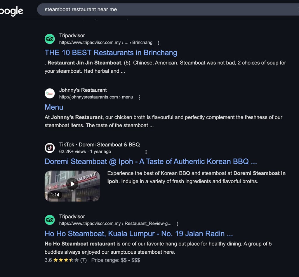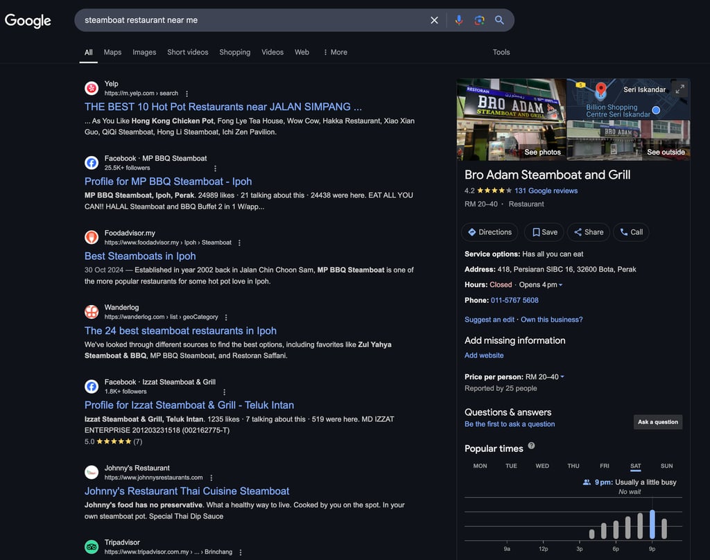 Maksudnya, kalau restoran anda muncul dalam carian “restoran steamboat dekat saya”, anda ada peluang BESAR untuk dapat pelanggan baru hari tu juga! 🔥